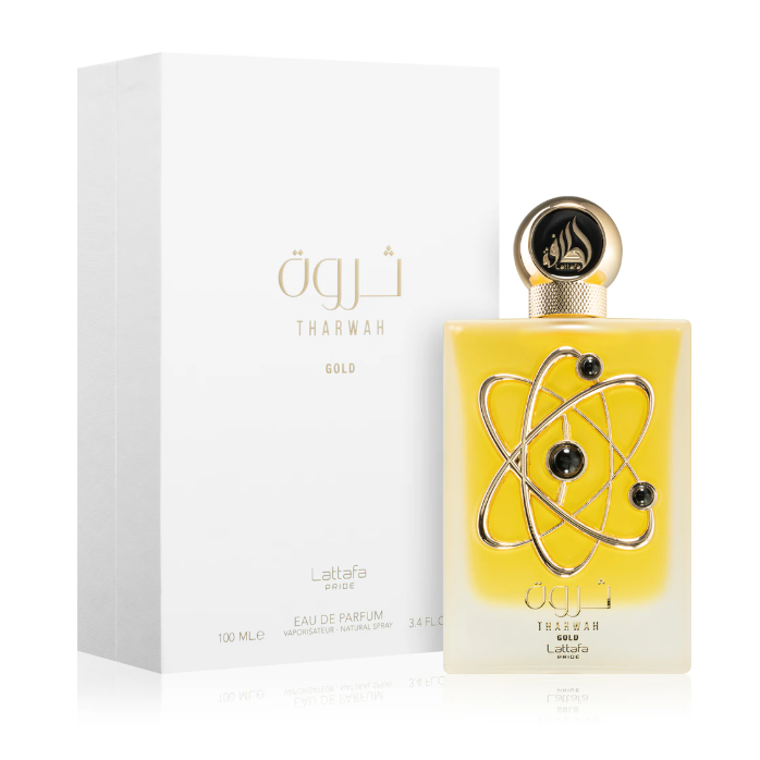 Lanzado en 2022, Tharwah Gold es una joya moderna de la colección Lattafa: un perfume que celebra la belleza, el éxito y la feminidad radiante.